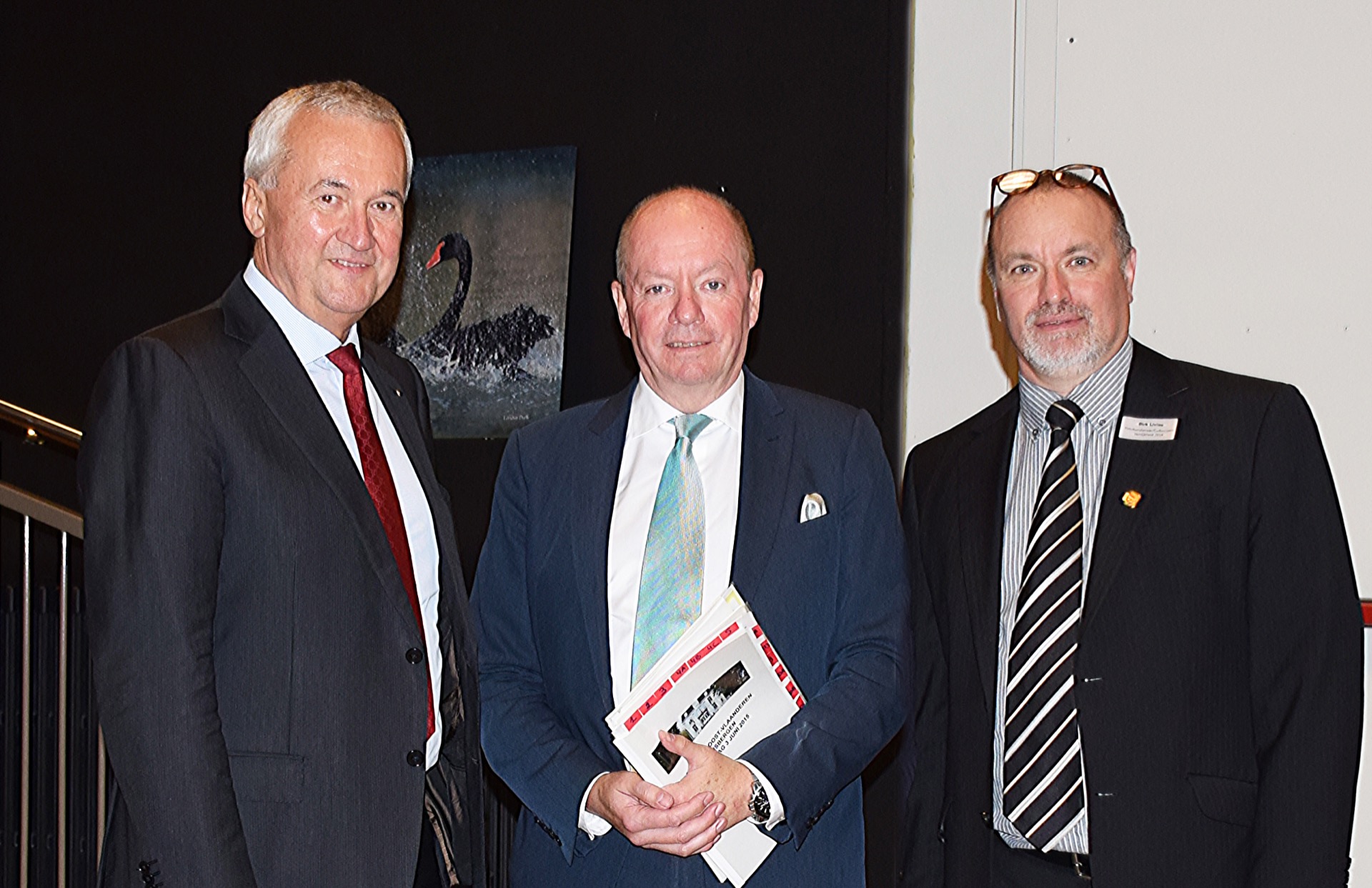 Première "Dreamscapes" tijdens de huldiging als laureaat culturele persoonlijkheid (van links naar rechts : burgemeester Philippe Willequet, gouverneur Jo Briers, laureaat Dirk Liviau)